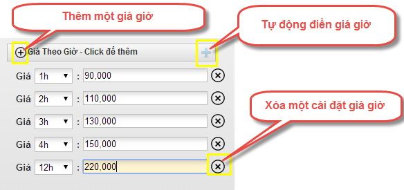 , Cửa sổ tự động hiện lên. Bạn nhập giá giờ đầu và giá tiến mỗi giờ. Khi đó chương trình sẽ tự động điền giá nhanh nhất cho bạn.