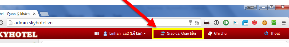 Nhấp nút giao ca. Tiền giao của ca trước sẽ thành tiền nhận từ ca trước của ca sau