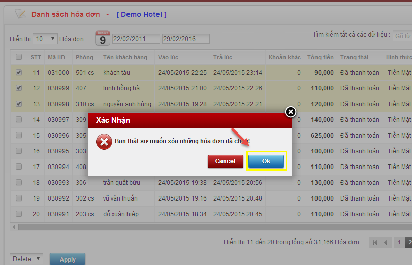 2. Tại hộp thoại xác nhận Xóa hóa đơn > Nhấn OK
